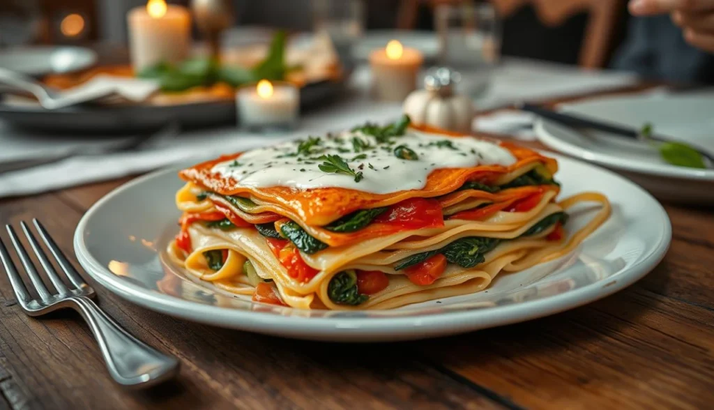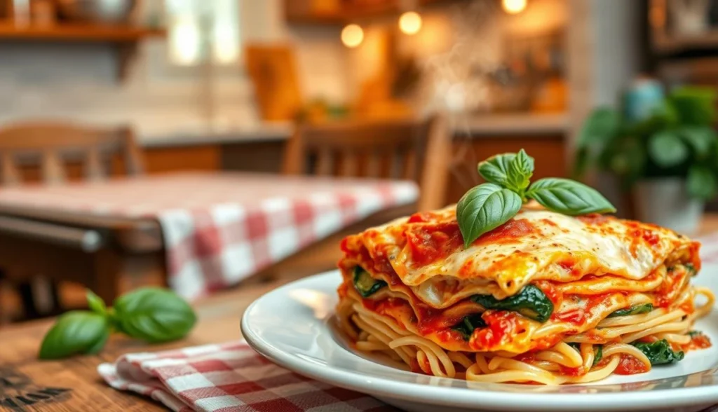 Imagine a família reunida para comer uma lasanha leve deliciosa. É perfeita para um jantar em família cheio de amor. Esta receita é ótima para quem quer algo saudável sem perder o sabor.